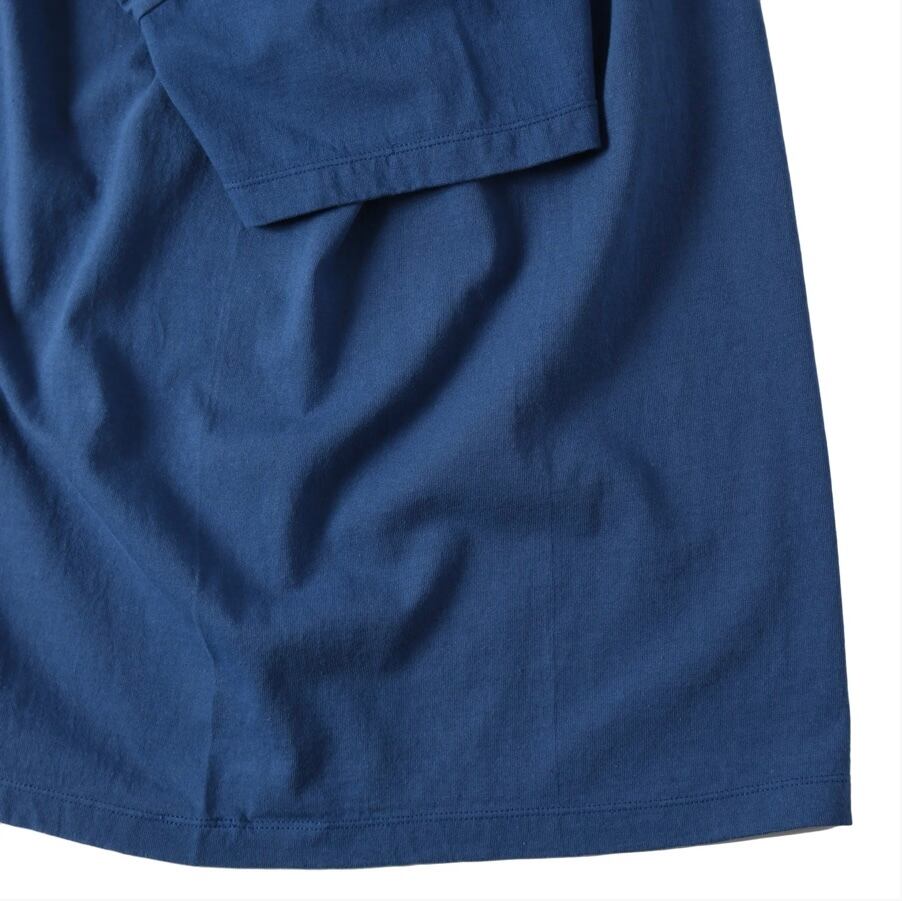 丸胴と呼ばれる脇に縫い目がないように仕上がった生地をそのまま採用。筒状で仕上がるボディは肌あたりが優しくストレスフリーな着用が可能。