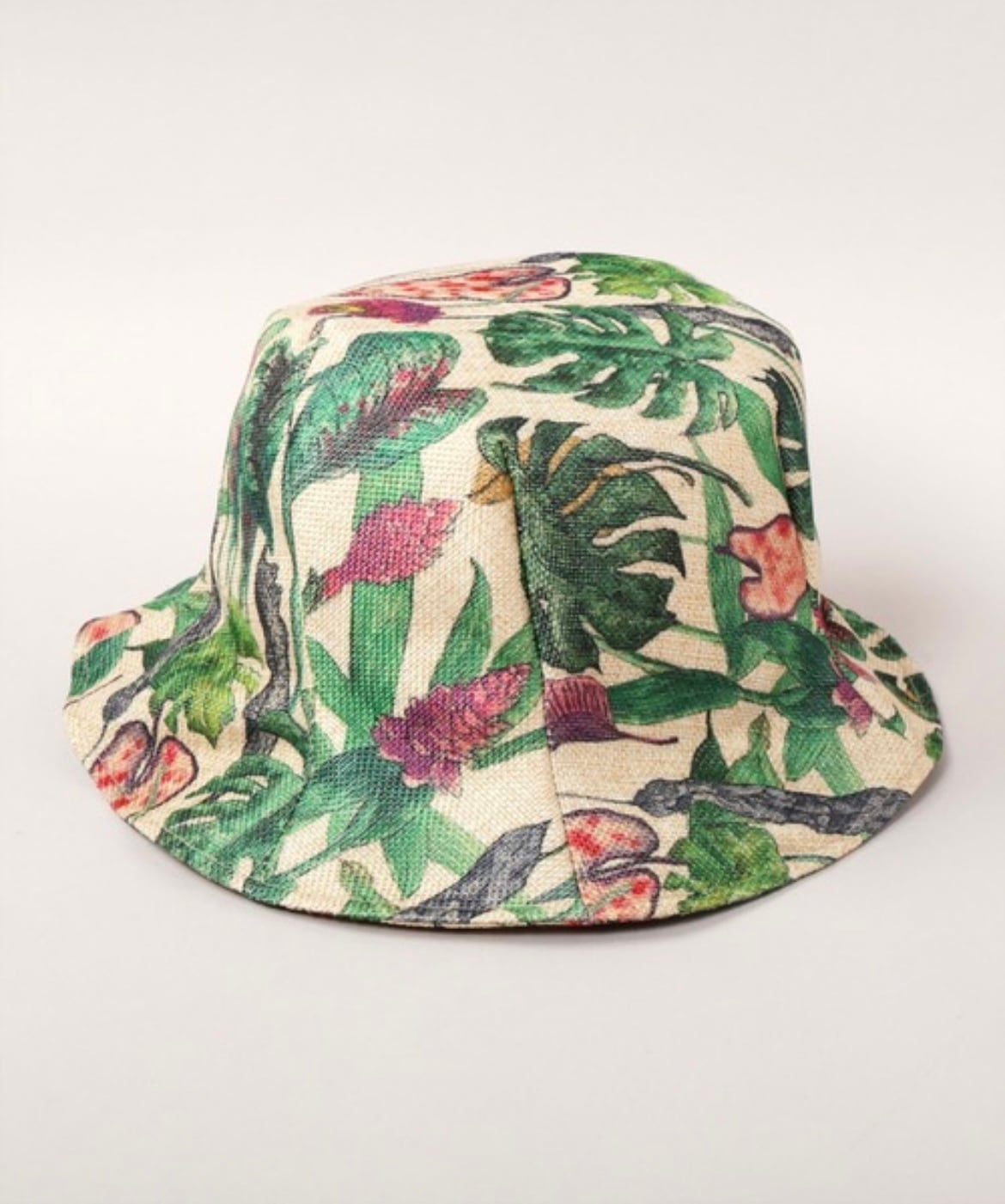 インパクトのあるボタニカル柄が特徴のデザイン。コーディネートに取り入れるだけで、リゾート感のある印象に。