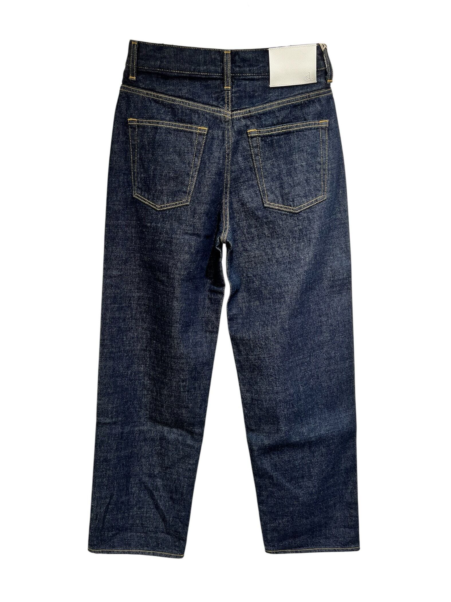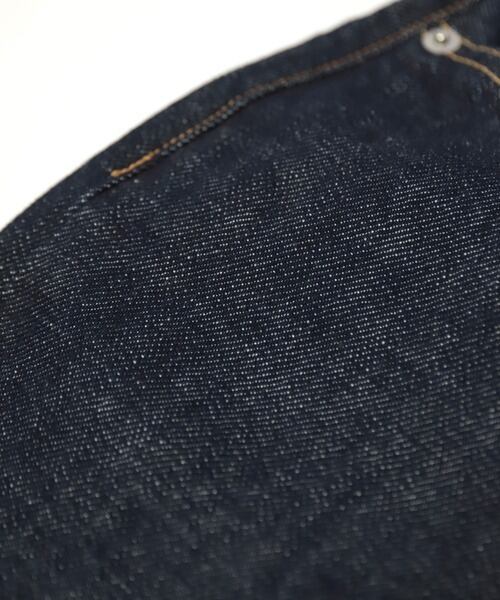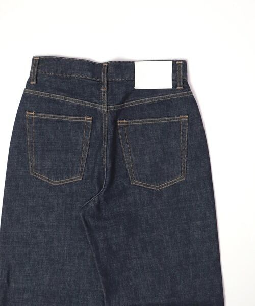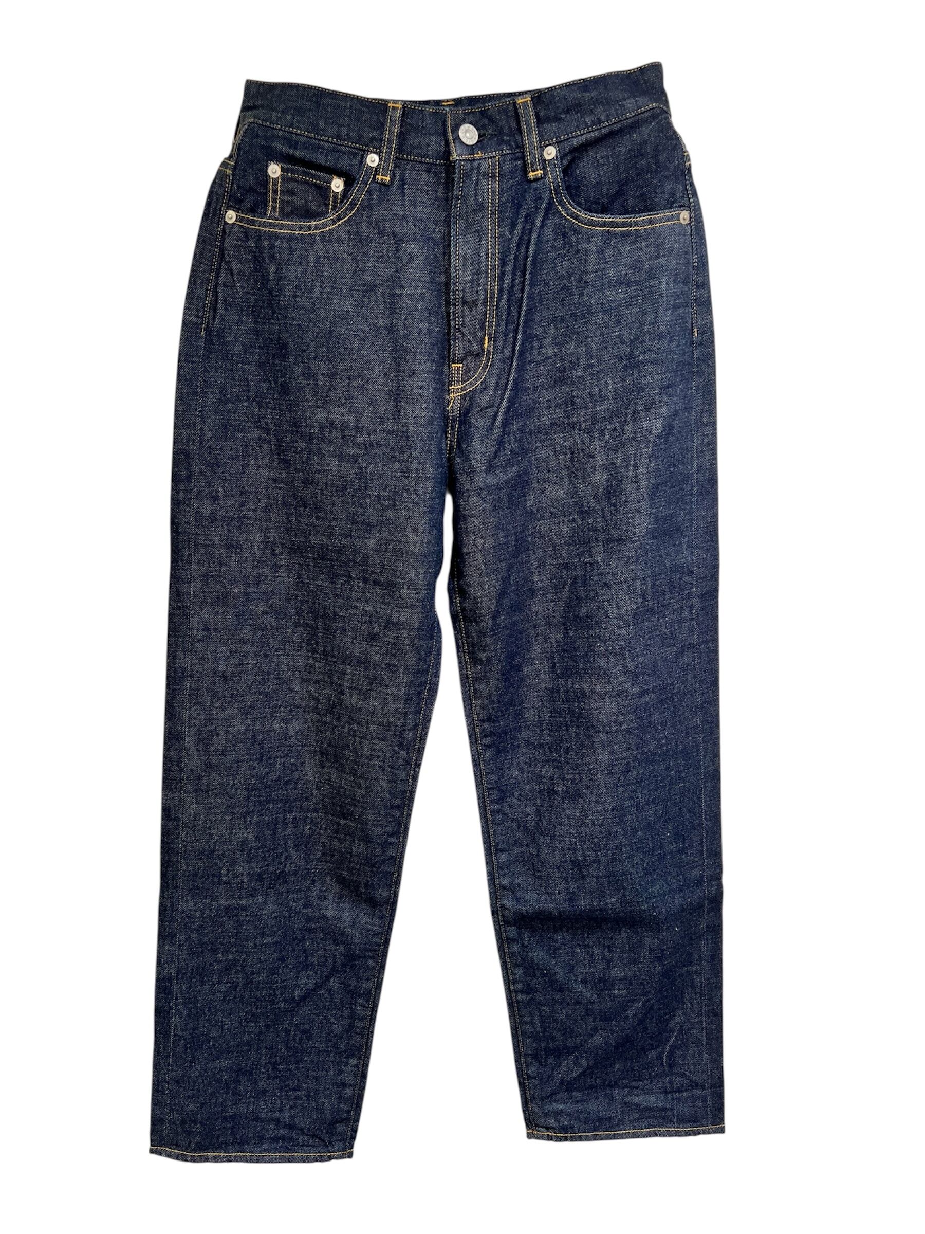 ハイウエストの設定でヒップとわたりに程よくゆとりをもたせた自然な丸みのあるルーズなシルエットで、裾に向かってゆるやかにテーパードを形成した綺麗なストレートモデルのジーンズです。