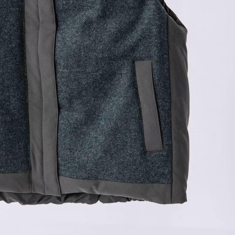 暖かさはもちろん、見た目の上質さにもこだわった、ウールライトダウンベスト。表地には柔らかく上品なウール混素材を使用し、カジュアルな中にも落ち着いた雰囲気を演出します。